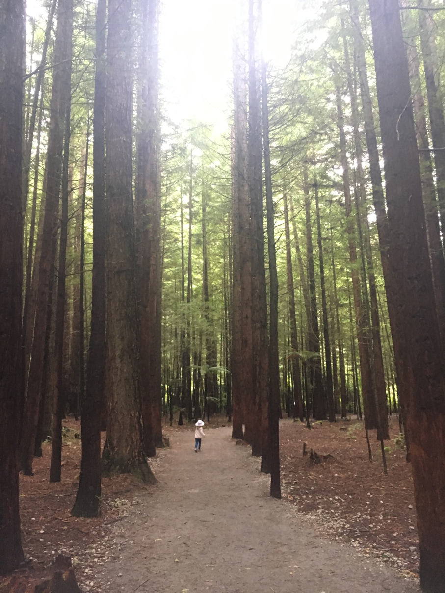 After the success of the treetops, we decided to enjoy ground level too, and embarked on a half hour circular walk, this time at fern level, and dwarfed by the massive trees. As we walked, Kevin and Jemima played pirate sword fighting with sticks (she is going through an enthusiasm for sticks), which helped keep her going round. Invigorated by it all, and watered by the odd rain shower, we waved goodbye to Rotorua, and set off for our next nature fix down the brilliantly-named Thermal Highway: the Tongariro National Park.
