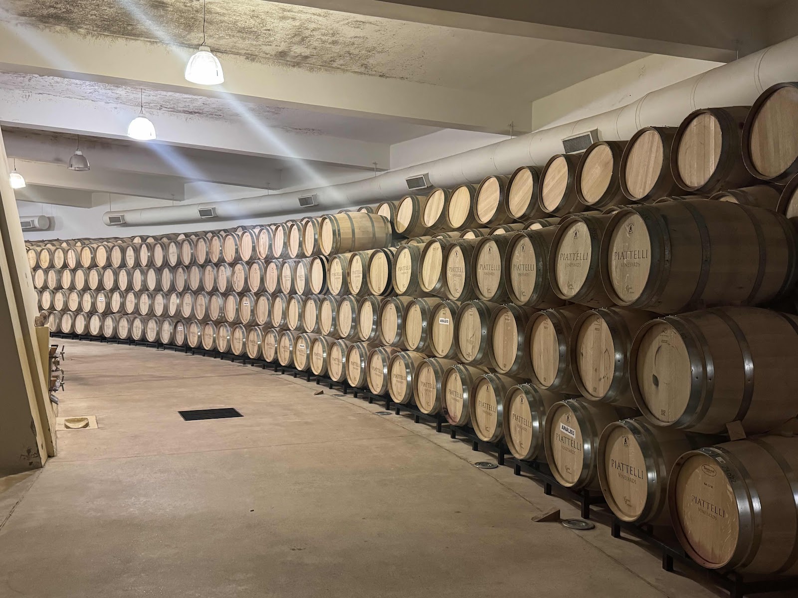 We were heading to Piattelli Vineyard, about 20 minutes out of town - and you could tell when we arrived. First, a security man on the gate ticking you off his list. Second, beautiful landscaped gardens up ahead. And third, fields and fields of well-kept vines all around, shining lush green in the bright sun.