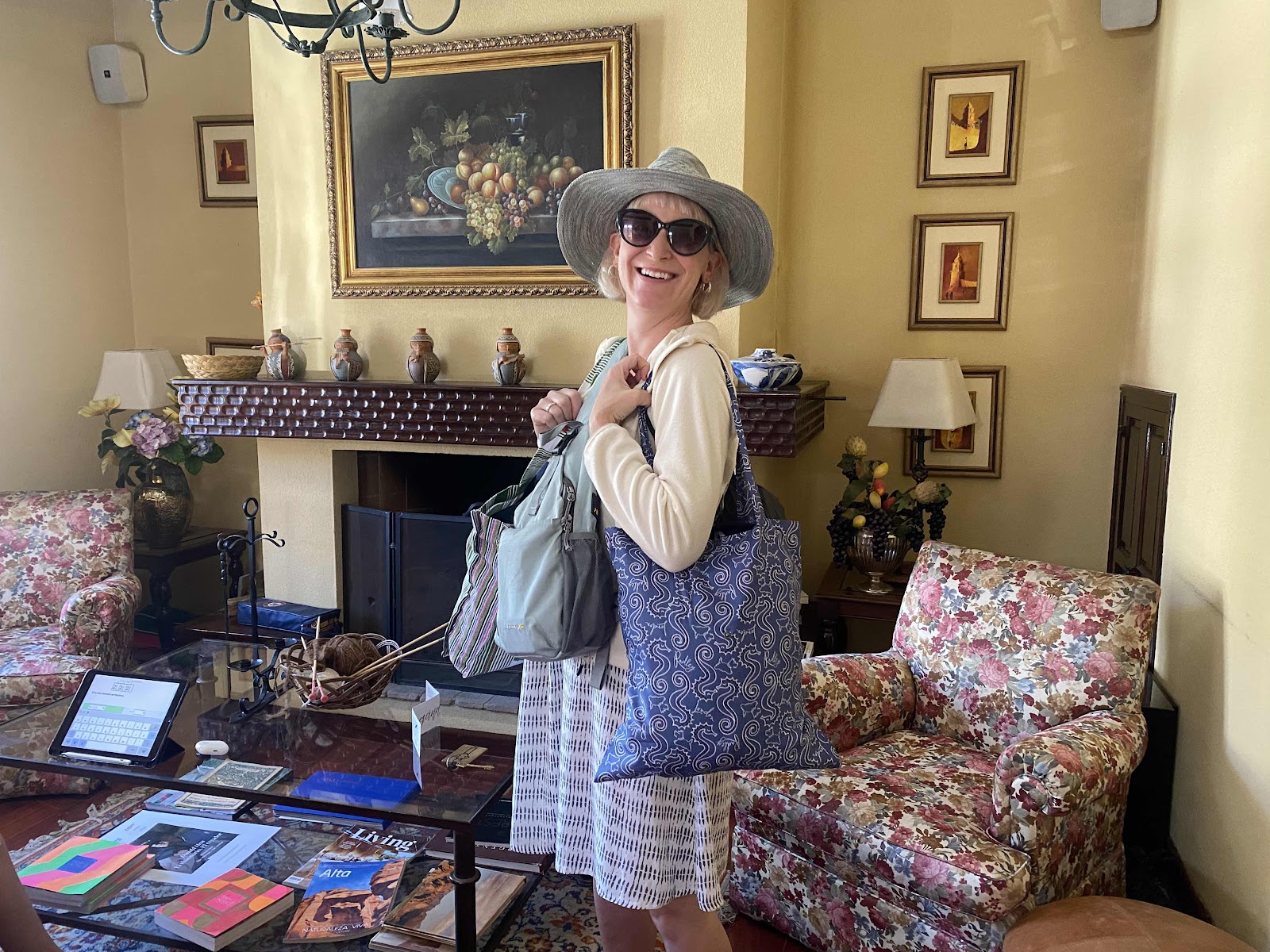 We’d come for a tour, wine-tasting, and lunch. The tour was brief but interesting, seeing the immaculate equipment eg giant metal vats, or a temperature- and humidity-controlled room for the barrels. And then the tasting was fun - they specialise in a white grape, Torrentes, in this area, which is delicious; and their red wines were lovely. (I am no oenophile - my response is a pretty unsophisticated “yes I like it”, or “I’m not so keen”, but, as Kevin said, it can be a bit like modern art - you know what you like, and that’s ok).